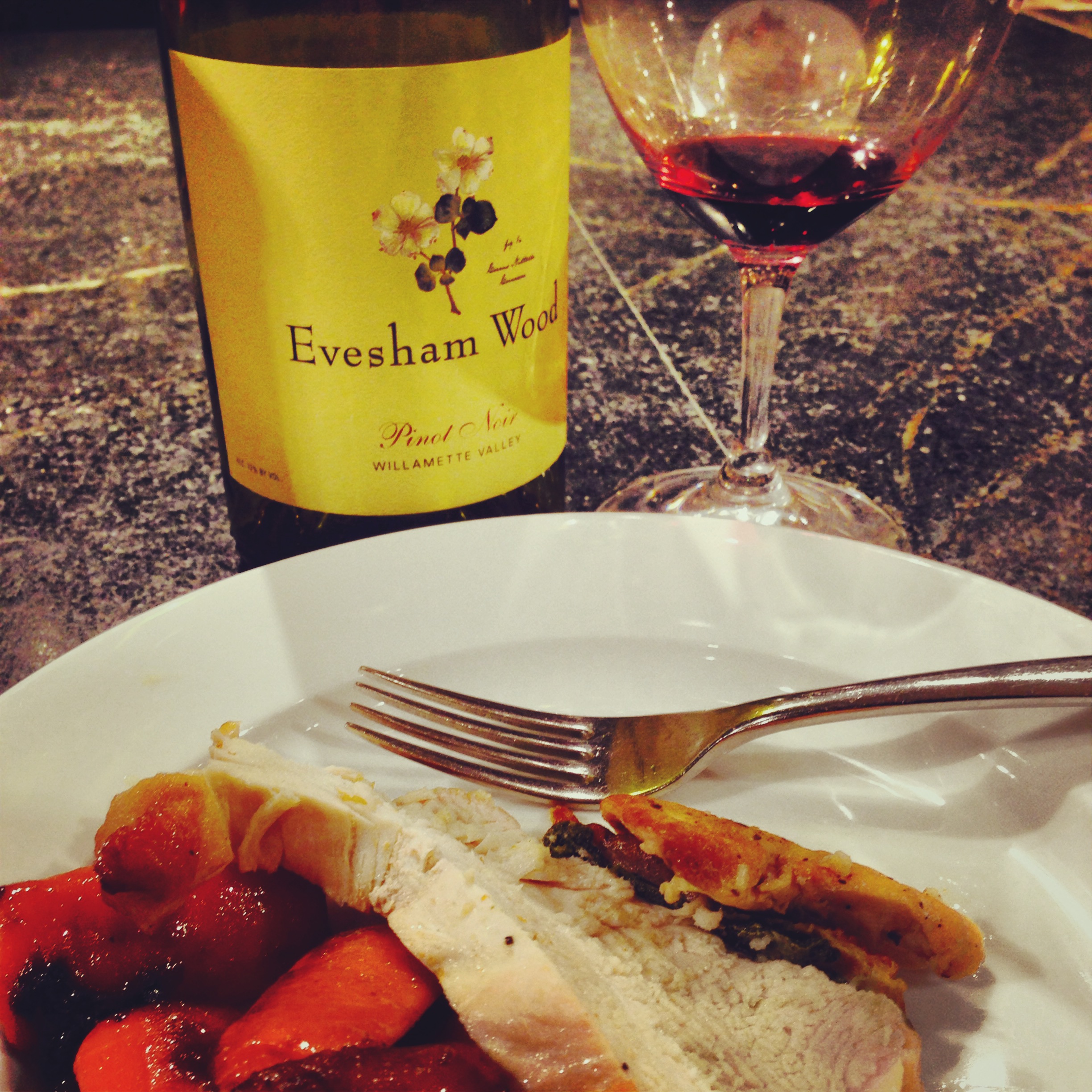 This week in my Holiday Pairings Class at Cooks of Crocus Hill, I paired the 2011 Evesham Wood Willamette Valley Pinot Noir to our sage stuffed turkey breast and the pairing proved again that Pinot still holds its own for the holiday. From the roasted root vegetables on the table to your herbed dressing, the tasting notes of most any global Pinot will pick up the essentials on your turkey table.