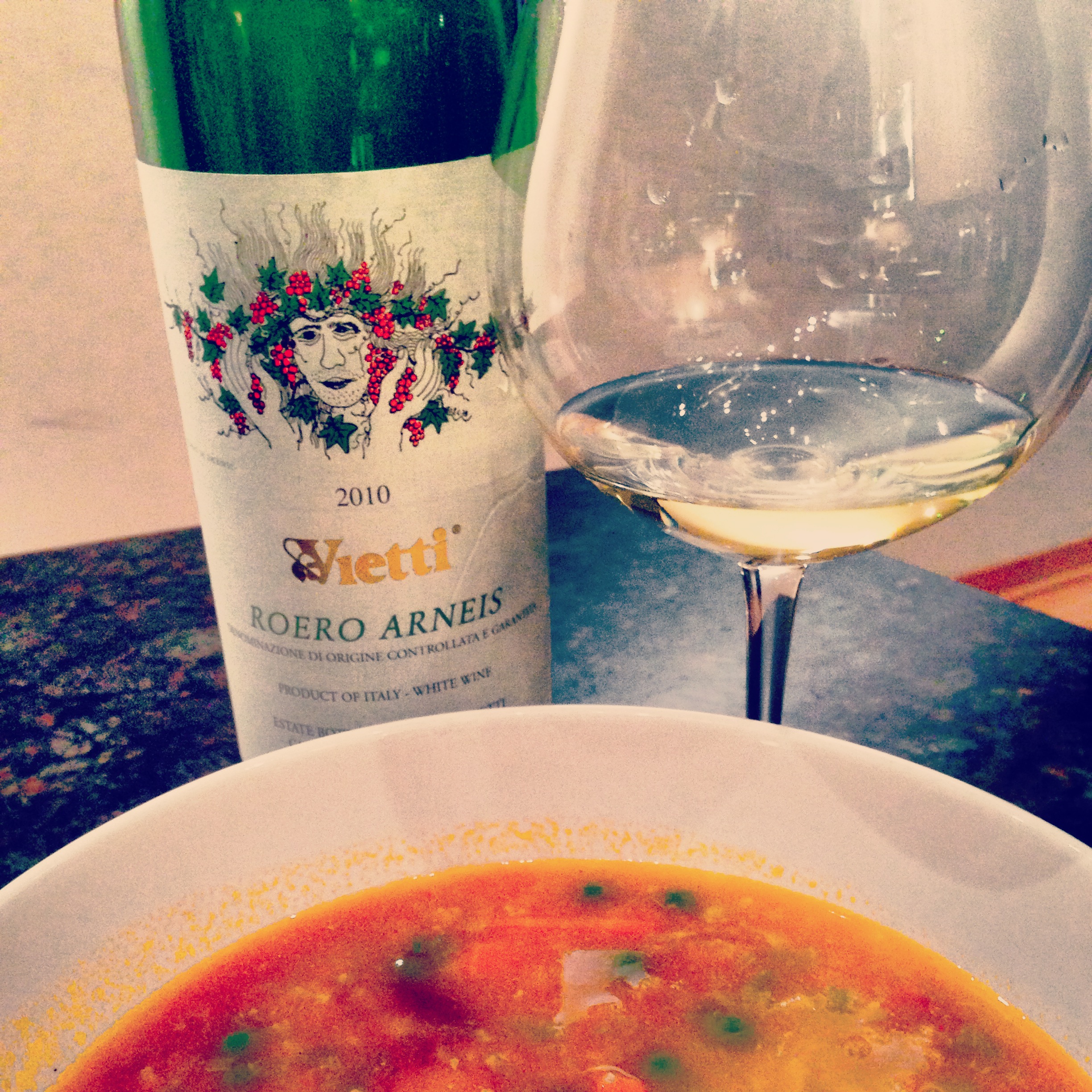 Why it worked with the Vege and Farro Soup?  The hearty bits of the ground turkey and vegetables of this soup needed a little ‘pick me up’ to keep the dish a bit lighter.  The sweetness of the carrots came alive as the wine encapsulated the natural sugars of the vegetable.  At the same time, the well rounded, earthy and more minerally parts of the wine nicely snuggled into the  natural farro grains.  Just lovely!