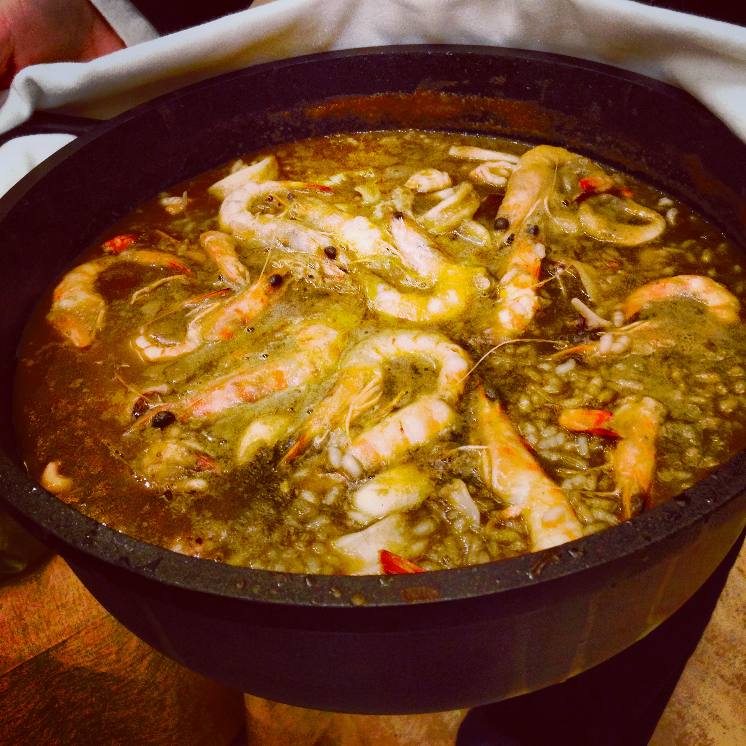 dishes that were served with our luncheon of: Rice with Baby Squids, Shrimp and Clams and Beef Fricandó with mushrooms. YUM!!