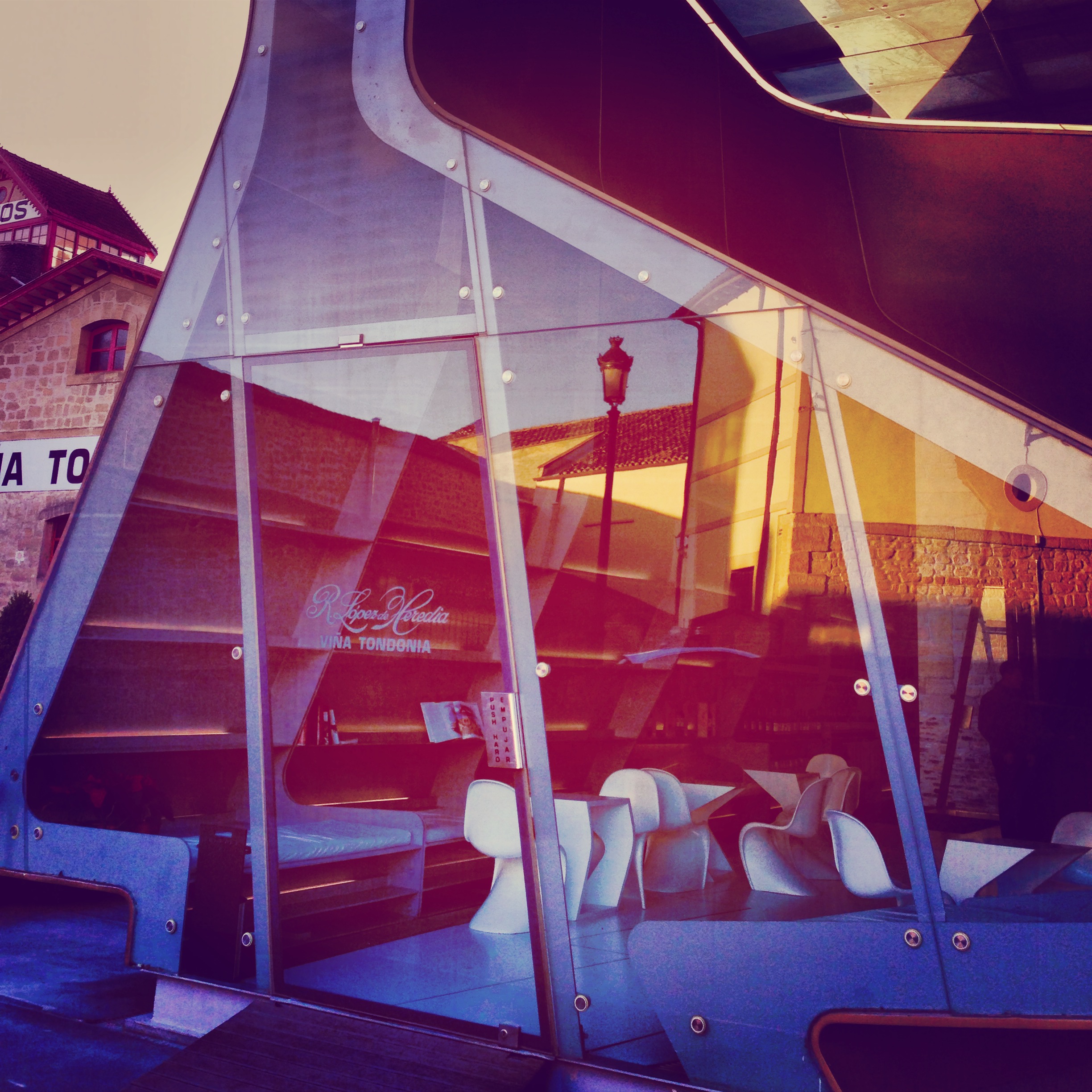 Surprisingly, the winery entrance is a bit of aIMG_8279 ‘throw off’ as the outside looks quite modern when you approach the site (designed by Zaha Hadid, an Iraqi female architect). The look of the winery is designed in an all glass look in the shape of a wine decanter, with a very modern approach from its futuristic looking tasting room furniture to its winery shelving.  Yet, the second you step into the actual winery, it feels as if you’ve slipped back in time by 100 years.